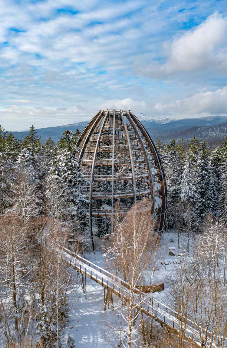Es gibt viele Möglichkeiten, den Bayerischen Wald zu entdecken und zu erspüren. Er breitet sich auf 6000 Quadratkilometern zwischen Donau, Böhmerwald und dem österreichischen Mühlviertel aus. Entlang der Grenze zu Tschechien liegt Deutschlands erstes und damit ältestes Großschutzgebiet, der Nationalpark Bayerischer Wald. Zusammen mit seinem böhmischen Pendant, dem Šumava, bildet er Europas größte zusammenhängende (Ur-)Waldlandschaft – das so zitierte „Grüne Dach Europas“.