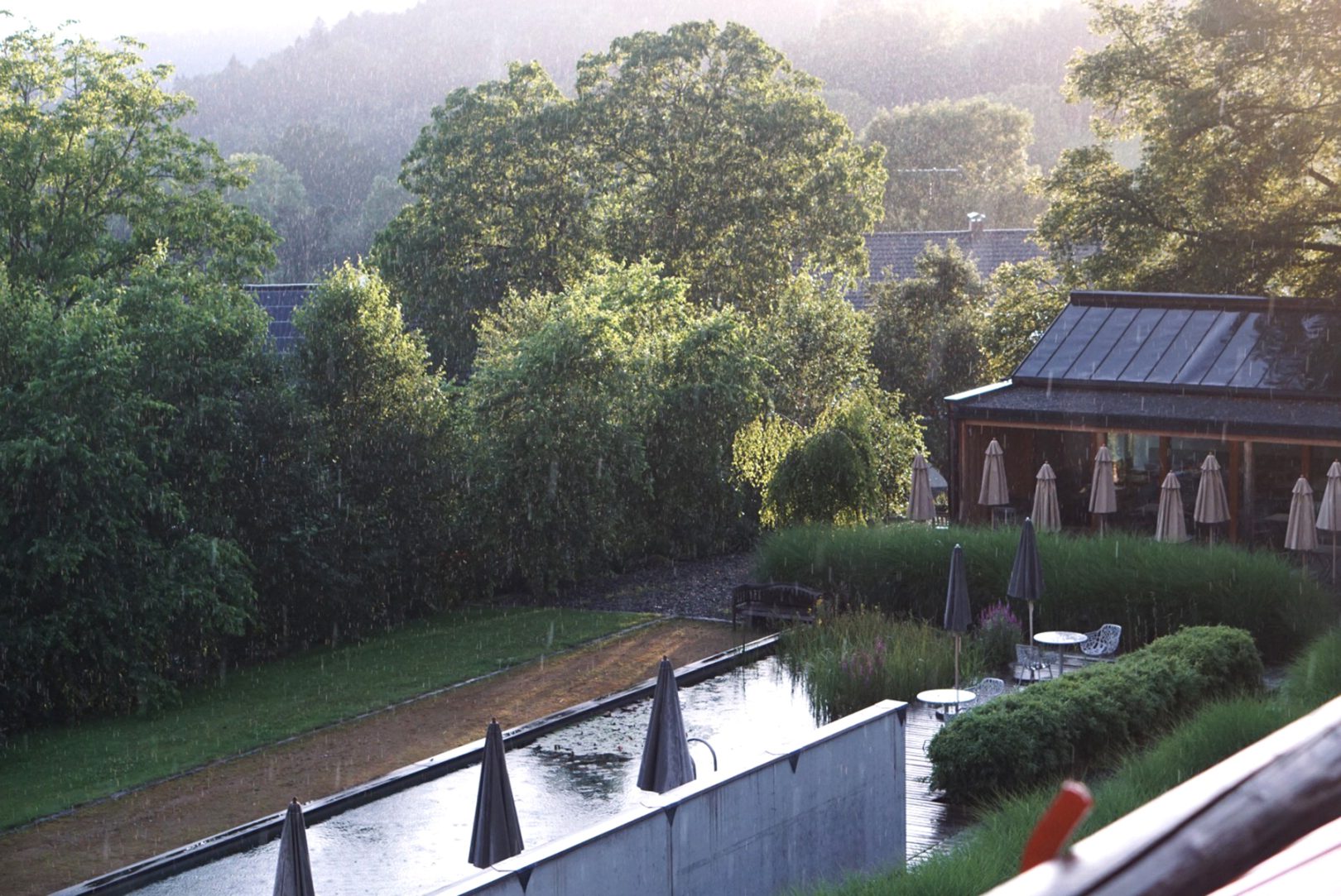 Der Naturschwimmteich passt sich den Außentemperaturen an dient im Sommer als Erfrischung und im Winter als Abkühlung nach der Sauna