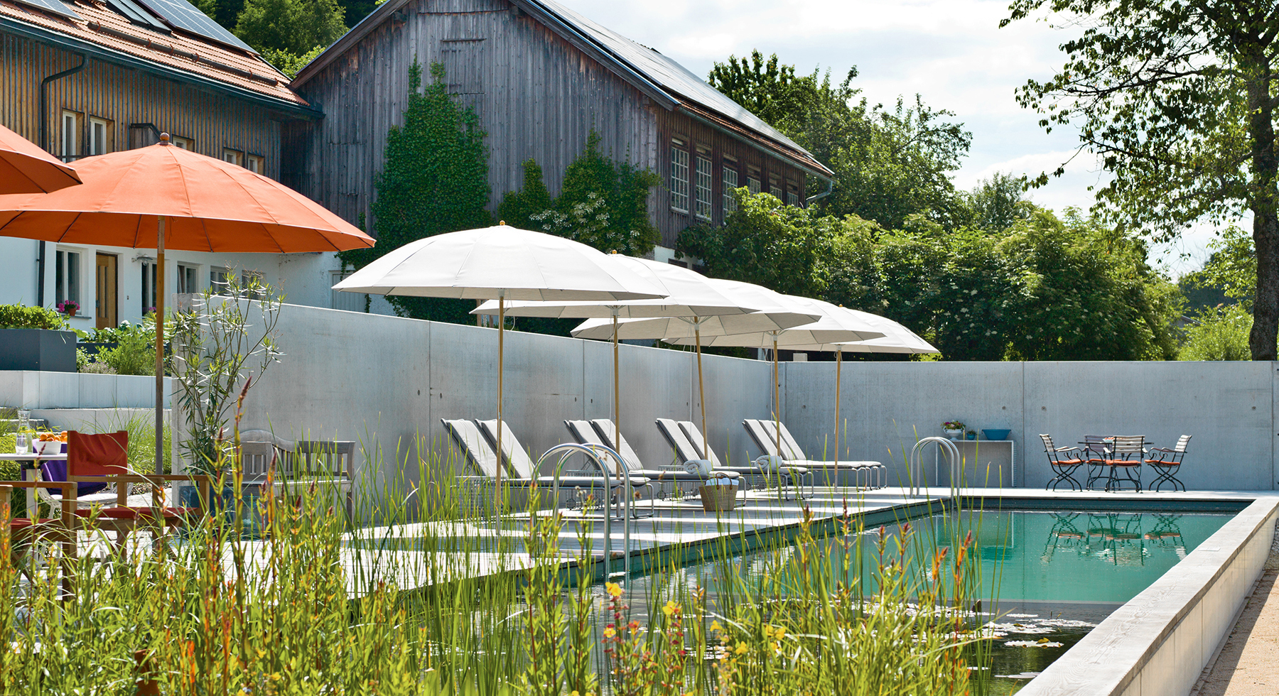 Sommerfrische trifft Ästhetik: In unserem idyllischen Garten lädt der Naturschwimmteich zum Abtauchen ein. An heißen Tagen bietet der Pool die perfekte Abkühlung. Erfrischende Bahnen ziehen oder einfach die belebende Wirkung des Wassers genießen. Am frühen Morgen mit einem Kaffe oder in der Nachmittagssonne bei einem Stück Kuchen von Oma Ludwiga. Die Entspannung am Rande des Pools lässt die Gedanken den Tagträumen nachsinnen.
